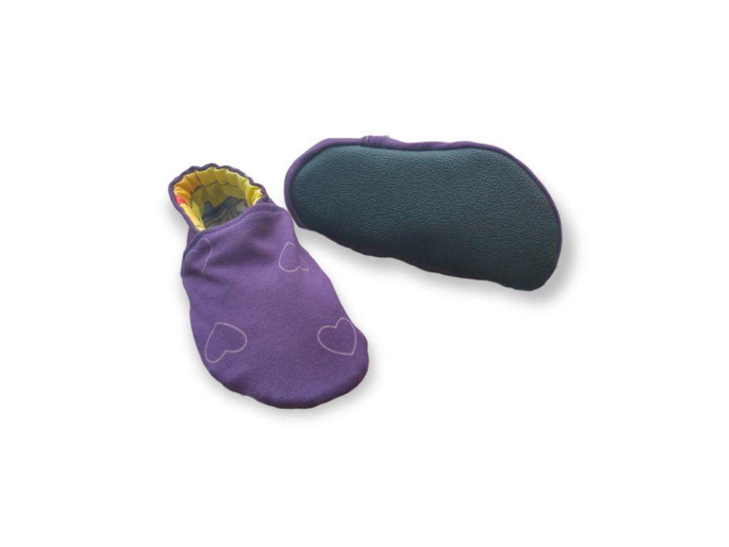 Capáčky bavlněné s protiskluzovou podrážkou fialové se srdíčky