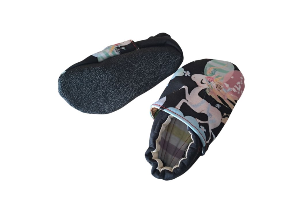 Softshellové capáčky vhodné na první krůčky. Svršek je vyroben ze softshellu s flísem, capáčky tedy zvládnou i vlhko (doporučujeme impregnovat impregnací na textil). Třívrstvá podrážka s prostřední vrstvou z měkkého flísu udrží nožičky v teple i v chladnějším počasí. Vnitřní vrstva je ze 100% bavlny, podrážka je z protiskluzové textilie. Capáčky mají anatomický tvar a dostatek místa pro prsty.