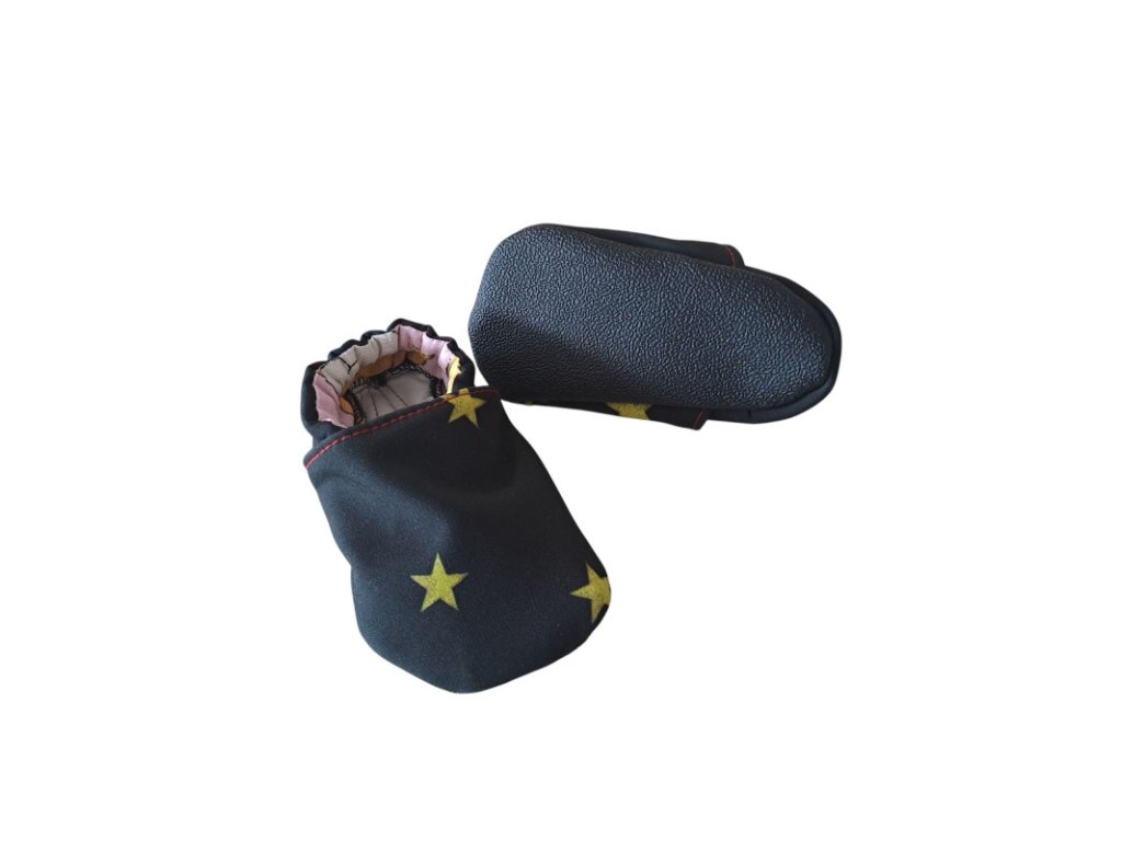 Softshellové capáčky vhodné na první krůčky. Svršek je vyroben ze softshellu s flísem, capáčky tedy zvládnou i vlhko (doporučujeme impregnovat impregnací na textil). Třívrstvá podrážka s prostřední vrstvou z měkkého flísu udrží nožičky v teple i v chladnějším počasí. Vnitřní vrstva je ze 100% bavlny, podrážka je z protiskluzové textilie. Capáčky mají anatomický tvar a dostatek místa pro prsty.