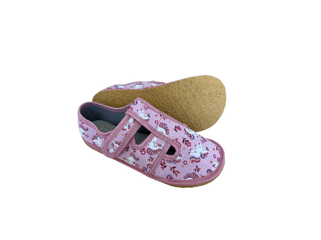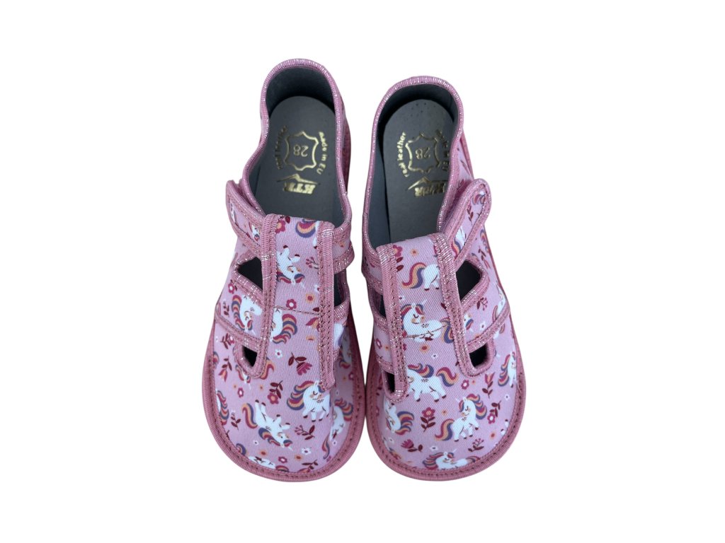Raweks barefoot přezůvky Zuzia růžové s jednorožci
