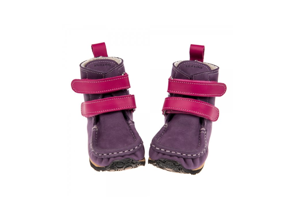 Ručně šité lehoučké zimní dětské botky z přírodně činěné kůže se zvýšenou voděodolností a s podšívkou z ovčí kožešiny, která zajišťuje výbornou izolaci a udržuje dětské nožky v suchu a teple. 6mm podrážka Vibram Superflex je lehká, flexibilní a s dobrou přilnavostí. Zapínání na suchý zip.